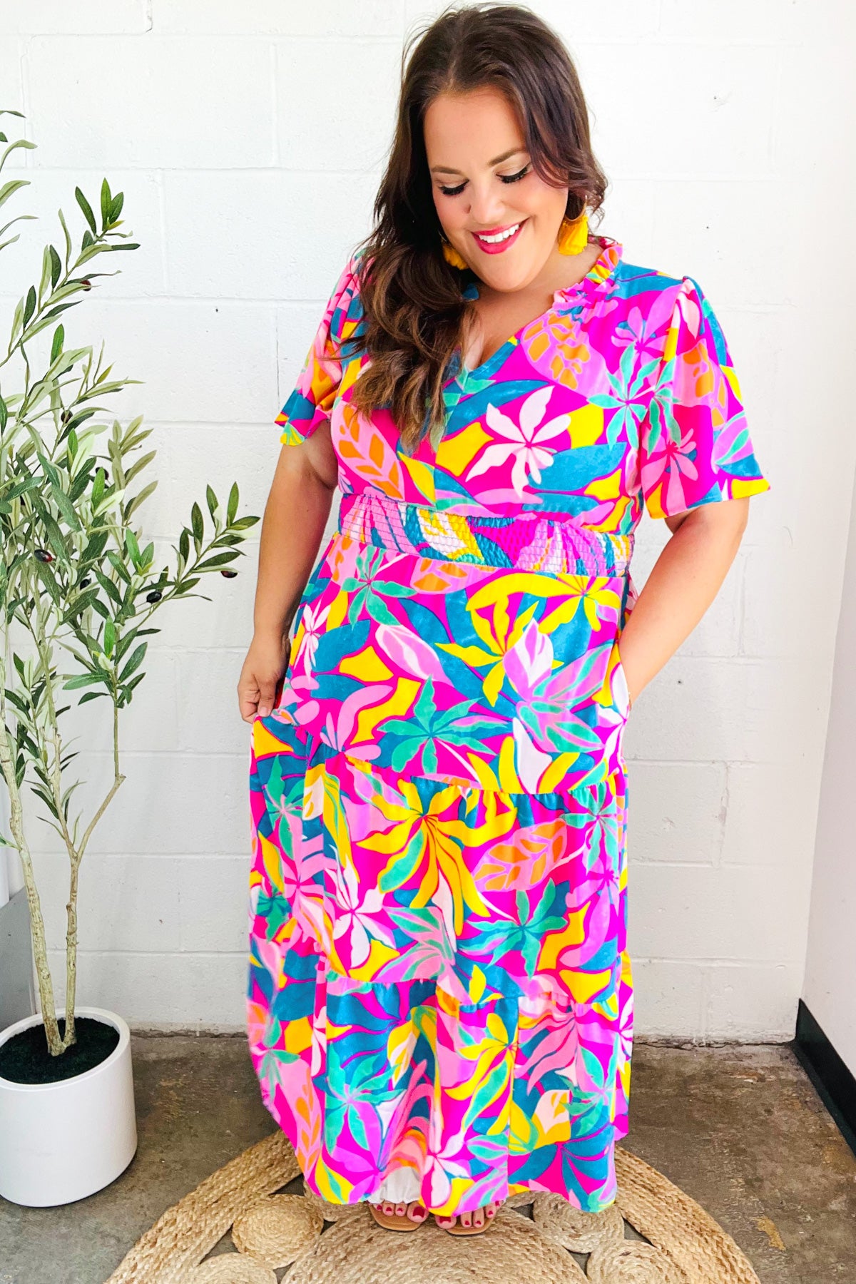 Tropical Trance Fuchsia Floral Smocked Waist Maxi Dress