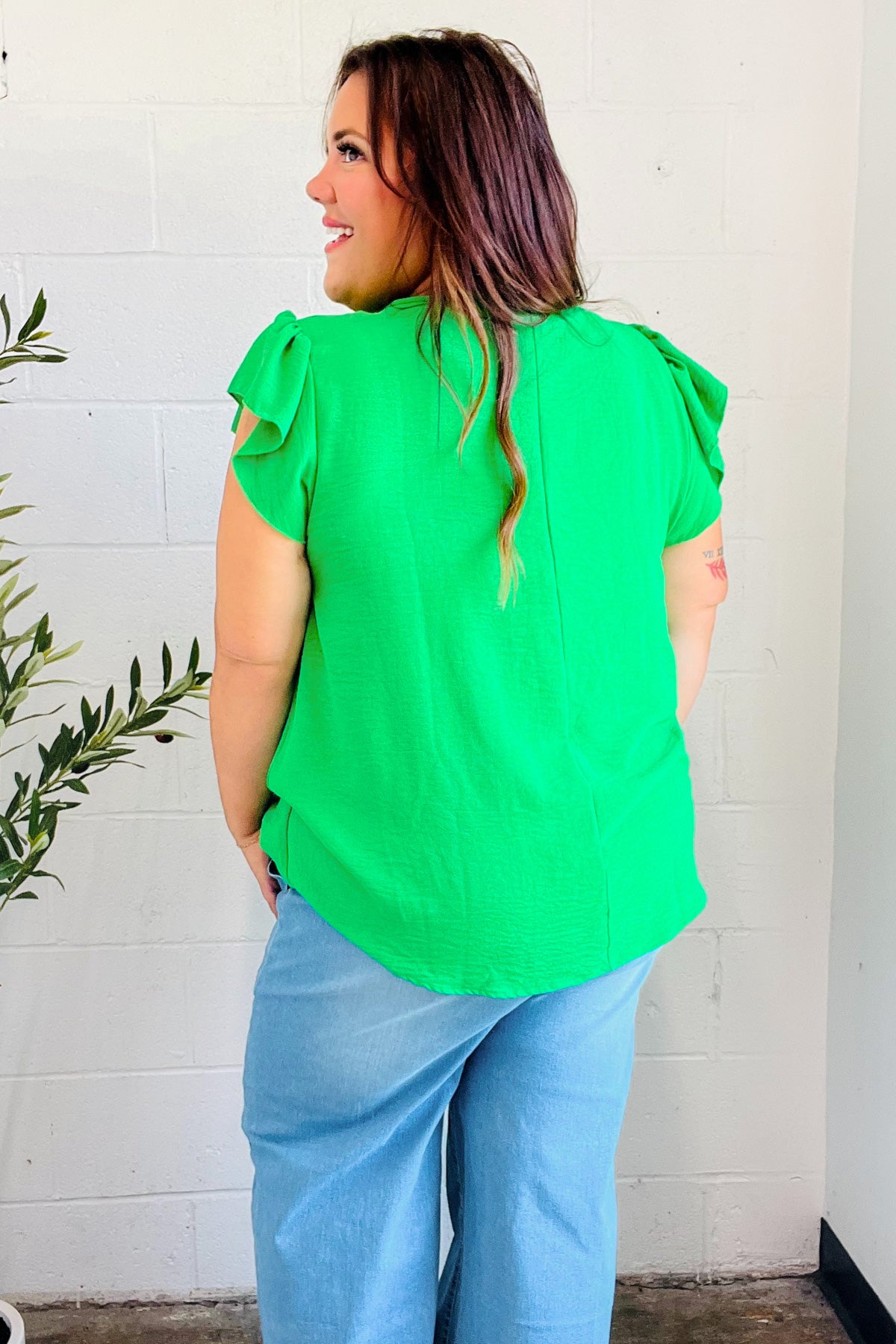 Sunny Days Kelly Green Banded V Neck Flutter Sleeve Top